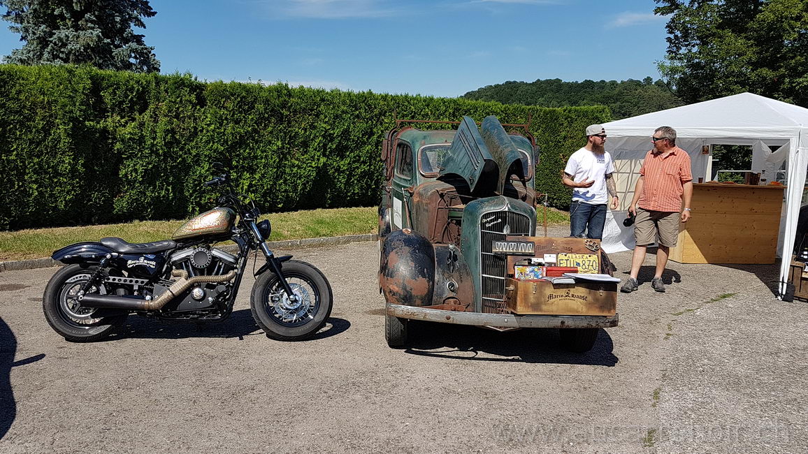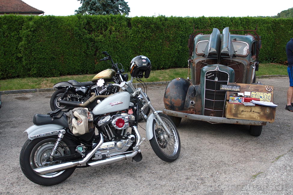 Vieille voiture et Harley Davidson