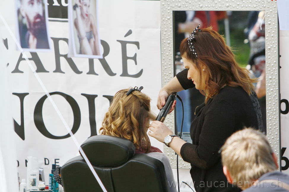 Coiffure rétro en préparation